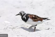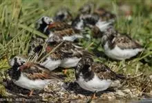 翻石鹬:体重82-135克,体长180-240毫米。体型高矮兼称,看起来十分的滑稽。它们在繁殖季时体色非常醒目,由栗色、白色和黑色交杂而成,嘴短,黑色,脚橙红色。到了冬天,翻石鹬身上的栗红色就会消失,…全部>>