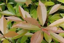 红叶石楠 是蔷薇科,石楠属杂交种,为常绿小乔木或灌木,乔木高可达5米、灌木高可达2米。叶片革质,长圆形至倒卵状、披针形,叶端渐尖,叶基楔形,叶缘有带腺的锯齿,花多而密,复伞房花序,花白色,梨果黄红色,…全部>>