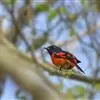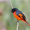 灰喉山椒鸟:共有8个亚种。体长18-22厘米。雄鸟头部和背亮黑色,腰、尾上覆羽和下体朱红色,翅黑色具一大一小的两道朱红色翼斑。中央尾羽黑色,外侧尾羽基部黑色,端部红色。…全部>>