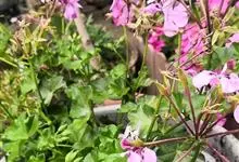 蔓性天竺葵学名盾叶天竺葵 Ait.)是牻牛儿苗科天竺葵属植物。多年生攀缘或缠绕草本,长40-100厘米,茎具棱角,多分枝,叶互生,略呈肉质,伞房花序腋生,有花数朵,花冠洋红色,上面2瓣着深色条纹,…全部>>