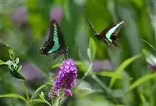 青带凤蝶Graphium sarpedon ,又名青凤蝶,是最普遍的中型凤蝶,飞行速度很快。青带凤蝶的翅膀中央有许多浅蓝色的斑点,很整齐地排列成一条直线。这些斑点由上而下逐渐变大,就像一条青色的带子。全部>>