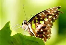 青带凤蝶Graphium sarpedon ,又名青凤蝶,是最普遍的中型凤蝶,飞行速度很快。青带凤蝶的翅膀中央有许多浅蓝色的斑点,很整齐地排列成一条直线。这些斑点由上而下逐渐变大,就像一条青色的带子。全部>>
