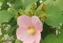 海滨木槿是锦葵科木槿属植物,落叶小乔木,株高3-5米,胸径20厘米,扁球形树冠,枝叶繁盛。厚纸质单叶互生,扁圆形、倒卵形或宽倒卵形,先端钝近平,具短突尖,基部圆形或浅心形,叶缘中上部具细圆齿,…全部>>