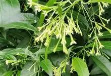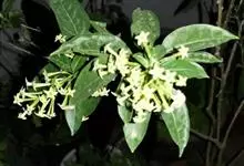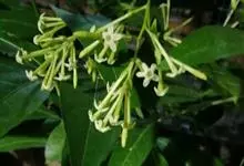 夜香树是茄科、夜香树属直立或近攀援状灌木。枝条细长而下垂。叶有短柄,叶片矩圆状卵形或矩圆状披针形,全缘,顶端渐尖,基部近圆形或宽楔形,两面秃净而发亮,有6-7对侧脉。伞房式聚伞花序,腋生或顶生,…全部>>