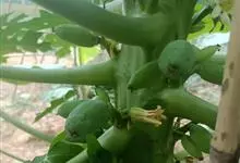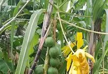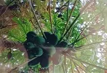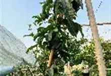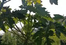 番木瓜,番木瓜科番木瓜属的常绿软木质小乔木,高达10米,具有乳汁;茎不分枝或有时于损伤处分枝;叶大且聚生于茎顶,近似盾形,叶柄中空;花单性或两性,有些品种雄株偶尔生两性花或雌花,…全部>>