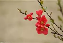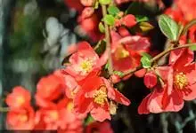 贴梗海棠 Nakai)是蔷薇科、木瓜海棠属植物。落叶灌木,高达2米,枝条直立开展,有刺。叶片卵形至椭圆形,稀长椭圆形,长3-9厘米,宽1.5-5厘米。花先叶开放,3-5朵簇生于二年生老枝上。…全部>>