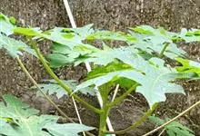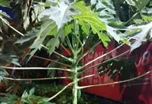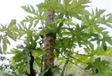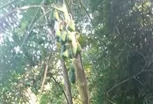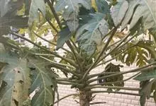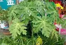 番木瓜,番木瓜科番木瓜属的常绿软木质小乔木,高达10米,具有乳汁;茎不分枝或有时于损伤处分枝;叶大且聚生于茎顶,近似盾形,叶柄中空;花单性或两性,有些品种雄株偶尔生两性花或雌花,…全部>>