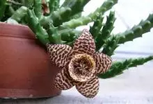 豹皮花 L. C. Leach)是夹竹桃科、豹皮花属植物。肉质植物,茎亮绿色,几株簇生在一起,高约10厘米,状似仙人掌,四棱,棱稍钝,棱具粗厚软刺,光滑,绿色。无叶。…全部>>