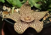 豹皮花 L.C.Leach)是马利筋亚科豹皮花属植物。肉质植物,茎亮绿色,几株簇生在一起,高约10厘米,状似仙人掌,四棱,棱稍钝,棱具粗厚软刺,光滑,绿色。无叶。…全部>>