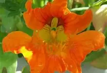 旱金莲是旱金莲科旱金莲属蔓生一年生草本植物。叶互生,叶柄向上扭曲,盾状,叶圆形,具波状浅缺刻,下面疏被毛或有乳点;花黄、紫、桔红或杂色,花托杯状,花瓣为圆形,边缘具缺刻;果实为扁球形;花果期6-10月,…全部>>