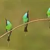 栗喉蜂虎是蜂虎科蜂虎属的鸟类。有热带鸟类羽毛艳丽的特征:喉部是栗红色的,黑色的过眼纹,翅膀和背部是绿色的,尾翼是蓝色的,飞行时翅膀下面的羽毛是橙黄色的,在阳光的照射下,它们全身闪烁着金属般的艳丽光泽,…全部>>