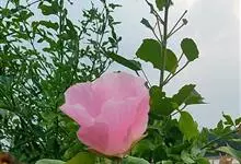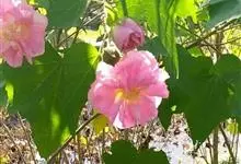 木芙蓉,锦葵科木槿属落叶灌木或小乔木。小枝上有细绒毛;叶片为卵状心形,托叶为披针形,常早落;花单生,花萼为钟形,花冠初为白色或淡红色,后逐渐变为深红色;果实为扁球形,有淡黄色的毛附着。花期8到10月。…全部>>