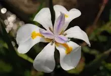鸢尾,又名老鸹蒜、蛤蟆七、扁竹花、紫蝴蝶、蓝蝴蝶、屋顶鸢尾等,是鸢尾科鸢尾属一种多年生草本植物。鸢尾根状茎粗壮,二歧分枝;叶基生,黄绿色,宽剑形;花茎光滑,苞片2-3枚,绿色,草质,边缘膜质,色淡,…全部>>