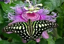 青带凤蝶Graphium sarpedon ,又名青凤蝶,是最普遍的中型凤蝶,飞行速度很快。青带凤蝶的翅膀中央有许多浅蓝色的斑点,很整齐地排列成一条直线。这些斑点由上而下逐渐变大,就像一条青色的带子。全部>>