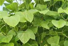 扁豆 Sweet)是豆科扁豆属多年生缠绕藤本植物,又名鹊豆、沿篱豆、藤豆等。全株几无毛,茎长可达6米。羽状复叶具3小叶;托叶基着,叶片披针形;小托叶线形,小叶宽三角状卵形,宽与长相等,…全部>>