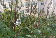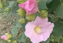 木芙蓉,锦葵科木槿属落叶灌木或小乔木。小枝上有细绒毛;叶片为卵状心形,托叶为披针形,常早落;花单生,花萼为钟形,花冠初为白色或淡红色,后逐渐变为深红色;果实为扁球形,有淡黄色的毛附着。花期8到10月。…全部>>