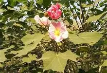 海滨木槿是锦葵科木槿属植物,落叶小乔木,株高3-5米,胸径20厘米,扁球形树冠,枝叶繁盛。厚纸质单叶互生,扁圆形、倒卵形或宽倒卵形,先端钝近平,具短突尖,基部圆形或浅心形,叶缘中上部具细圆齿,…全部>>