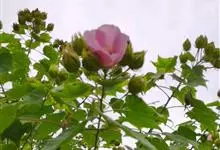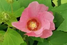 海滨木槿是锦葵科木槿属植物,落叶小乔木,株高3-5米,胸径20厘米,扁球形树冠,枝叶繁盛。厚纸质单叶互生,扁圆形、倒卵形或宽倒卵形,先端钝近平,具短突尖,基部圆形或浅心形,叶缘中上部具细圆齿,…全部>>