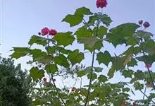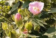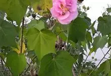 海滨木槿是锦葵科木槿属植物,落叶小乔木,株高3-5米,胸径20厘米,扁球形树冠,枝叶繁盛。厚纸质单叶互生,扁圆形、倒卵形或宽倒卵形,先端钝近平,具短突尖,基部圆形或浅心形,叶缘中上部具细圆齿,…全部>>
