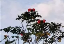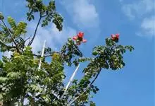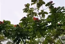火焰树是紫葳科、火焰树属乔木,树皮平滑,灰褐色。奇数羽状复叶,对生,连叶柄长达45厘米;小叶13-17枚,叶片椭圆形至倒卵形,伞房状总状花序,顶生,密集;被褐色微柔毛,具有明显的皮孔;花冠一侧膨大,…全部>>
