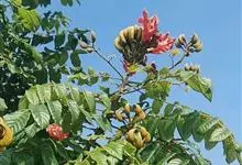 火焰木,又名苞萼木、喷泉树,为紫葳科常绿大乔木,株高10—20米,叶为奇数羽状复叶,对生,较大,斜椭圆形,全缘,纸质,叶面深绿色。 全部>>