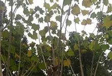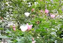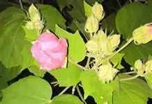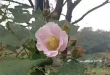 木芙蓉,锦葵科木槿属落叶灌木或小乔木。小枝上有细绒毛;叶片为卵状心形,托叶为披针形,常早落;花单生,花萼为钟形,花冠初为白色或淡红色,后逐渐变为深红色;果实为扁球形,有淡黄色的毛附着。花期8到10月。…全部>>