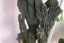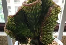 麒麟掌,是大戟科大戟属多年生植物。为金刚纂的带化变异变种。麒麟掌的株乳汁丰富;它的茎圆柱状,上部多分枝,绿色;叶互生,稀少,常生于嫩枝顶端脊上,倒卵形、倒卵状长圆形或匙形,顶端钝圆,具小凸尖,全缘,…全部>>