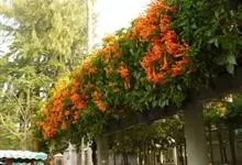 硬骨凌霄 Spach)是紫葳科硬骨凌霄属的多年生常绿木质藤本植物。茎多分枝;枝带绿褐色;叶对生,奇数羽状复叶,边缘有锯齿;总状或圆锥花序顶生,花冠漏斗状,橙红色或橙黄色;蒴果长线形,略扁;花期几乎全年,…全部>>