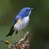 红胁蓝尾鸲俗名:蓝点冈子、蓝尾巴根子、蓝尾杰、蓝尾欧鸲。体型略小而喉白的鸲。特征为橘黄色两胁与白色腹部及臀成对比。雄鸟上体蓝色,眉纹白;亚成鸟及雌鸟褐色,尾蓝。…全部>>