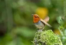 日本歌鸲:体型小似麻雀,但羽毛颜色较为美丽。嘴细长,嘴须不发达;翅短圆,上体草黄褐;雄鸟喉部橙棕色,十分明显,雌鸟却转为淡橙黄色。第一枚初级飞羽短狭;尾长约为跗蹠长度的二倍;跗蹠黑褐色,形粗长而健。…全部>>