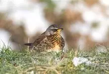 田鸫是鸫科、鸫属中型鸟类,体长25-28厘米,个体较一般鸫大。头顶、颈、腰淡蓝灰色,额和头顶有少许黑色纵纹,背栗褐色,两翅和尾黑褐色,眉纹白色。下体白色,喉、胸缀锈黄色具黑褐色纵纹,…全部>>