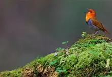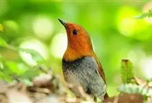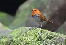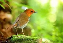日本歌鸲:体型小似麻雀,但羽毛颜色较为美丽。嘴细长,嘴须不发达;翅短圆,上体草黄褐;雄鸟喉部橙棕色,十分明显,雌鸟却转为淡橙黄色。第一枚初级飞羽短狭;尾长约为跗蹠长度的二倍;跗蹠黑褐色,形粗长而健。…全部>>