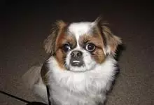 日本狆是极小型犬;被毛长而丰厚,不弯曲;毛色为白色底,带黑色或栗色斑块,斑块颜色越艳越好;斑块以在耳、身、面、尾根左右对称者为佳;头较大而圆,头骨平坦;吻短,鼻尖缩至两眼之间,几乎与眼同齐;眼大而凸出,…全部>>