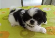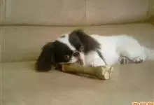 日本狆是极小型犬;被毛长而丰厚,不弯曲;毛色为白色底,带黑色或栗色斑块,斑块颜色越艳越好;斑块以在耳、身、面、尾根左右对称者为佳;头较大而圆,头骨平坦;吻短,鼻尖缩至两眼之间,几乎与眼同齐;眼大而凸出,…全部>>