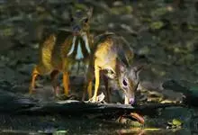 鼷鹿,别名小鼷鹿,共38个亚种。体形略比野兔大,体重1.3~2.0kg,体长420~630mm,肩高约200mm,是仅次于蹄兔目成员最小的有蹄类动物,也是鼷鹿科种体型最小的一种。面部尖长,无角,…全部>>