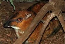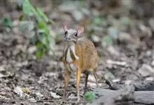 鼷鹿,别名小鼷鹿,共38个亚种。体形略比野兔大,体重1.3~2.0kg,体长420~630mm,肩高约200mm,是仅次于蹄兔目成员最小的有蹄类动物,也是鼷鹿科种体型最小的一种。面部尖长,无角,…全部>>