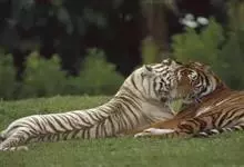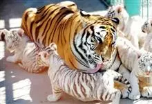 印度支那虎:简称印支虎。是老虎的一个亚种。雄性平均体重185千克,体长2.7米。与孟加拉虎相比,它们的体形较小,毛色更深,身上的条纹更短、更窄;而胃部、咽喉和两颊有较大的白色斑痕。…全部>>