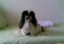 日本狆是极小型犬;被毛长而丰厚,不弯曲;毛色为白色底,带黑色或栗色斑块,斑块颜色越艳越好;斑块以在耳、身、面、尾根左右对称者为佳;头较大而圆,头骨平坦;吻短,鼻尖缩至两眼之间,几乎与眼同齐;眼大而凸出,…全部>>