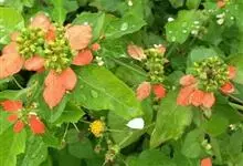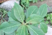 猩猩草:常绿或半常绿灌木,盆栽时株高0.5米-2米,在亚热带地区可长到6米以上。茎直立而光滑,单叶互生,卵状椭圆形至阔披针形,具不规则的深缺刻。长10-15厘米。花小,有蜜腺,排列成密集的伞房花序。…全部>>