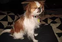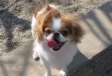 日本狆是极小型犬;被毛长而丰厚,不弯曲;毛色为白色底,带黑色或栗色斑块,斑块颜色越艳越好;斑块以在耳、身、面、尾根左右对称者为佳;头较大而圆,头骨平坦;吻短,鼻尖缩至两眼之间,几乎与眼同齐;眼大而凸出,…全部>>