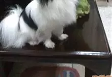 日本狆是极小型犬;被毛长而丰厚,不弯曲;毛色为白色底,带黑色或栗色斑块,斑块颜色越艳越好;斑块以在耳、身、面、尾根左右对称者为佳;头较大而圆,头骨平坦;吻短,鼻尖缩至两眼之间,几乎与眼同齐;眼大而凸出,…全部>>