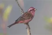 酒红朱雀小型鸟类,体长13~15厘米。雄鸟通体深红色,头部深朱红或棕红色,下背和腰玫瑰红色,眉纹粉红色而具丝绢光泽。两翅和尾黑褐或灰褐色、具暗红色狭缘,内侧两枚三级飞羽具淡粉红色先端。…全部>>
