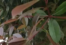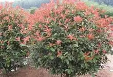 红叶石楠 是蔷薇科,石楠属杂交种,为常绿小乔木或灌木,乔木高可达5米、灌木高可达2米。叶片革质,长圆形至倒卵状、披针形,叶端渐尖,叶基楔形,叶缘有带腺的锯齿,花多而密,复伞房花序,花白色,梨果黄红色,…全部>>