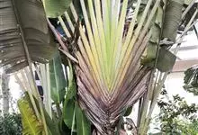 旅人蕉是鹤望兰科旅人蕉属的常绿乔木状多年生草本植物。茎似棕榈;树干直立丛生,圆柱形像棕榈,表面粗糙且干纹明显,外形像一把大折扇;叶长圆形,外形像蕉叶,叶片排列于茎顶形似大折扇;花为穗状花序腋生,…全部>>