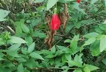 垂花悬铃花是锦葵科、悬铃花属常绿小灌木,外型略似朱槿,但叶片较为狭长浓绿;高30-60厘米,叶片互生,卵形或卵状矩圆形,单叶,有时浅裂,叶形变化较多,叶面具星状毛。花红色,花通常单生于上部叶腋处,下垂,…全部>>