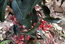 朱砂根是报春花科紫金牛属植物,又名铁凉伞、红铜盘、百两金、大罗伞、开喉箭等,为常绿小灌木,高1~2米,茎粗壮,无毛,除侧生特殊花枝外,无分枝,叶片革质或坚纸质,椭圆形、椭圆状披针形至倒披针形,…全部>>