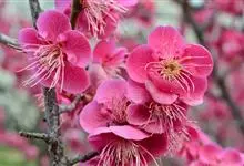 梅:蔷薇科、李属木本植物。小乔木,稀灌木,高4-10米;树皮浅灰色或带绿色,平滑;小枝绿色,光滑无毛。叶片卵形或椭圆形,叶边常具小锐锯齿,灰绿色。花单生或有时2朵同生于1芽内,直径2-2.5厘米,…全部>>