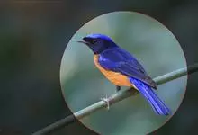 棕腹大仙鹟:体重24-28克,体长15-17厘米,是一种小型的色彩亮丽的鹟。雄鸟上体深蓝,下体棕色,脸黑,额、颈侧小块斑、翼角及腰部亮丽闪辉蓝色。与棕腹仙鹟易混淆,区别在色彩较暗。雌鸟灰褐,…全部>>