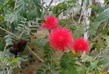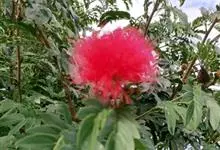 红粉扑花 Benth)是豆科,朱缨花属半落叶灌木。株高为可达2米,二回羽状复叶,具有1对羽片,而其小叶只有1对,其形状如肾脏形。红粉扑花在正午或晚上时,其叶子和花朵均会闭合起来。…全部>>