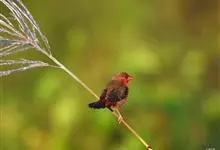 红梅花雀小型鸟类,体长9-10厘米。雄鸟通体朱红色,背、肩、胸等满布白色小斑点,两翅和尾黑褐色均具白色端斑,嘴红色,脚蜡黄色。雌鸟上体淡褐色或赭褐色,翅上中覆羽、大覆羽和内侧飞羽末端具白色斑点,…全部>>